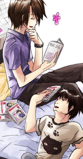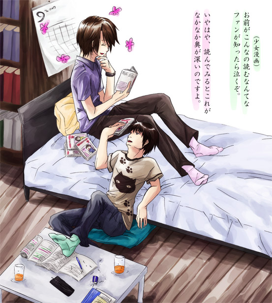 初めはキョンの部屋でキョン妹の忘れていった少女漫画を思わず読みふける古泉っていう絵を描いていたんですが、説明長い上にキョンの部屋の資料が手元に無かったので捏造古泉の部屋って事で^^;