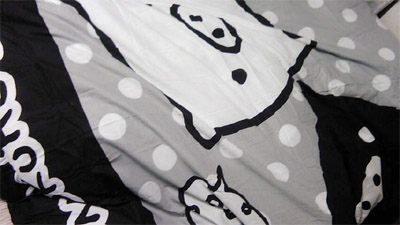 あ、それと、画像はあれです。部屋の掃除をしていたら使っていないモノクロブーなふとん掛けカバーが出てきたので、弟(同い年)の部屋の布団カバーをこっそりこれに変えてきましたって奴です^^<かわいいじゃなーい